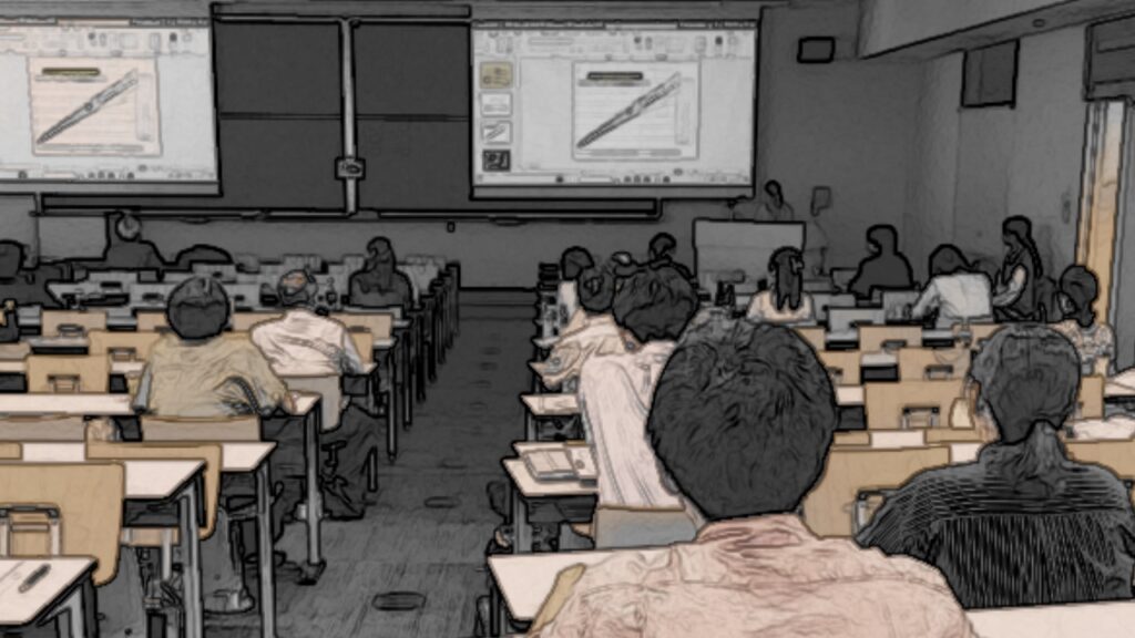 ポスター発表の場で質疑応答が交わされています。