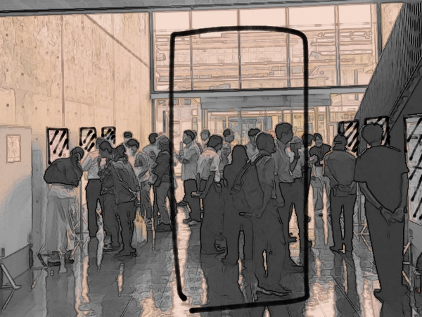 中央にポスターは写っていなかったので、院長先生以外、人物は加工してinstagramリールで使用しました。