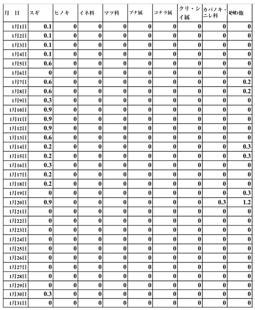 ・「その他」は不明な花粉。