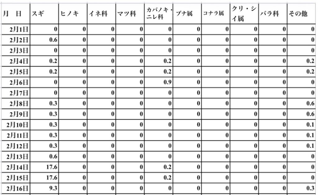 「2月16日までのデ-タを送ります。2月14日が花粉飛散開始日のようです。」と院長先生。