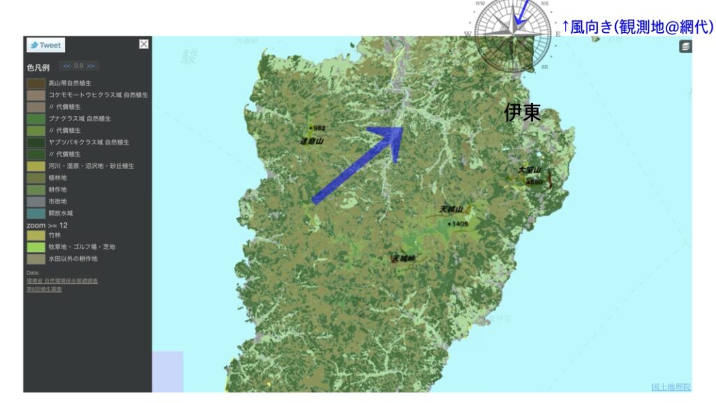 m「ほぼ西南西の風ということは、天城辺りから飛んで来るんですか?」